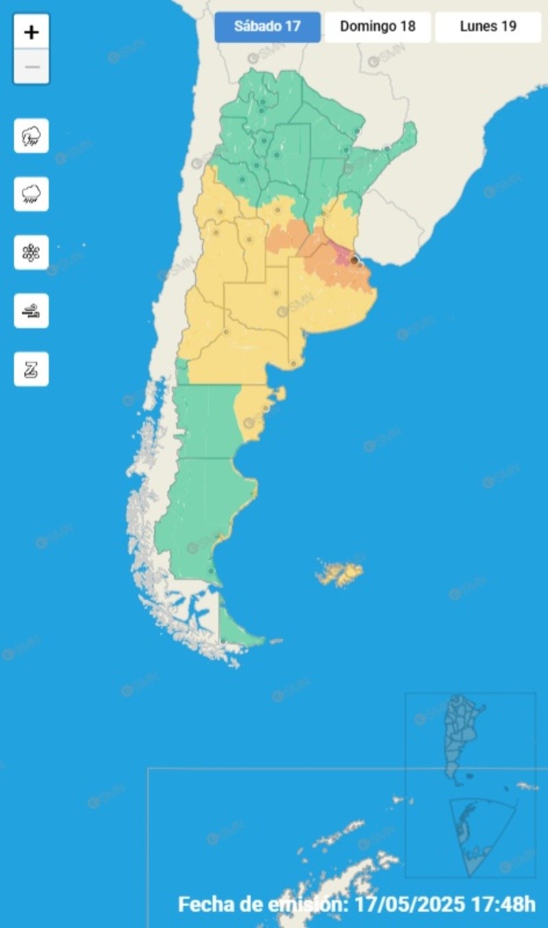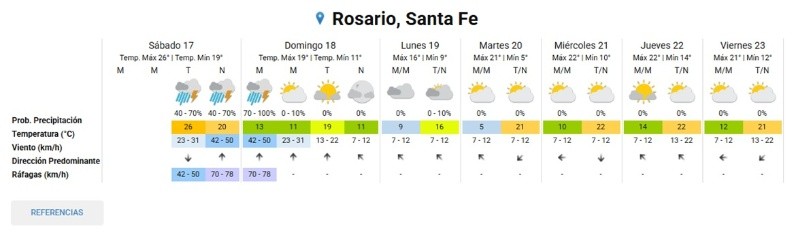 Cerca de las 17, el Servicio Meteorológico Nacional (SMN) emitió un aviso de muy corto plazo por el temporal, mientras el termómetro marcaba 21,9° y la humedad se mantenía en 96%. Posteriormente, se elevó el alerta de nivel amarillo a naranja ante la posibilidad de fenómenos de alta intensidad.