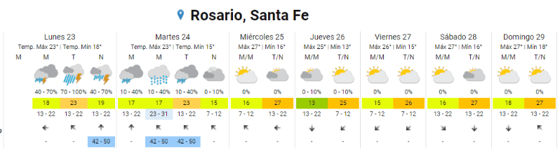 Después de un domingo electoral lluvioso, Rosario amaneció pesado y nublado, bajo alerta meteorológico amarillo por tormentas. El aire se respiraba denso y pegajoso y de acuerdo al pronóstico del Servicio Meteorológico Nacional (SMN), seguirá así el resto del lunes. Aunque cesó la advertencia oficial, alrededor de las 14 en la ciudad y la región empezó a llover torrencialmente y la tarde seguiría pasada por agua.