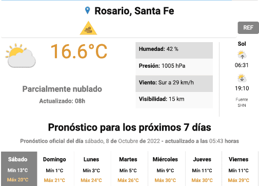Rosario amaneció ventosa este sábado 8 de octubre. Es que desde la madrugada rige un alerta de nivel amarillo por las fuertes ráfagas de viento que se están haciendo sentir en toda la región. Esto hizo que temprano a la mañana la temperatura se posicionara en los 16 grados.