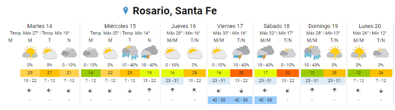Este martes Rosario amaneció bajo un cielo totalmente despejado y con una temperatura mínima de 11 grados. Según el Servicio Meteorológico Nacional, se espera un ascenso de temperatura y una máxima que alcanzaría los 27 grados este martes
