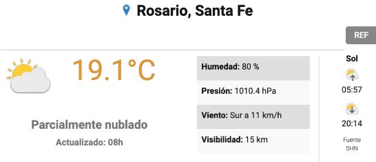 De acuerdo al reporte del Servicio Meteorológico Nacional (SMN), el cielo estará parcialmente nublado durante casi toda la jornada. Pero eso no evitará que el calor se haga sentir en la ciudad y la región. La humedad rondará el 80 por ciento y el viento del sur soplará a 11 km en la hora.