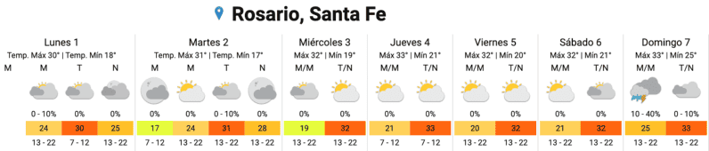 Para el martes 2, primer día hábil del año, se espera todavía más calor. El cielo permanecerá nublado pero con una máxima que podría llegar a los 31, el miércoles el termómetro irá en ascenso con 32 de máxima y el jueves podría llegar a los 33ºC.