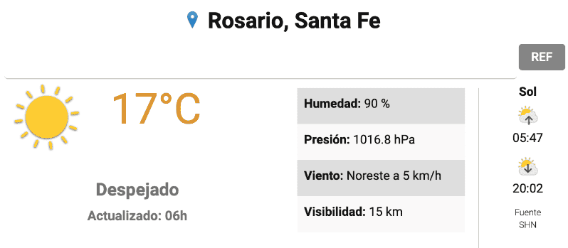 Este feriado del 8 de diciembre comenzó con cielo completamente despejado. A primera hora de la mañana, la temperatura se ubicaba en los 17 grados con la promesa de seguir subiendo hasta los 27ºC, que son los que el reporte del Servicio Meteorológico Nacional (SMN) sostiene como máxima del día.
