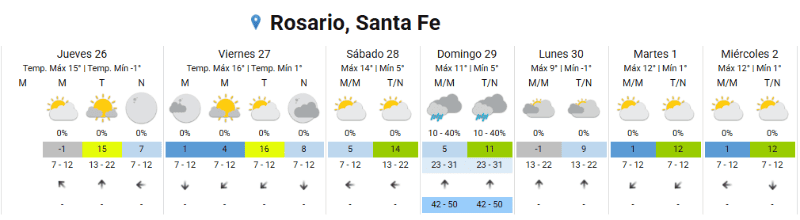 Este jueves Rosario amaneció con un cielo parcialmente nublado y con temperaturas bajo cero al igual que los días anteriores. El Servicio Meteorológico Nacional (SMN) registró una temperatura mínima de -0 y se espera que la máxima alcance los 15 grados.