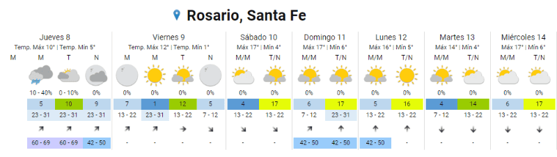 Este jueves, Rosario amaneció con alerta amarilla por fuertes vientos que estuvieron presentes durante toda la madrugada y seguirían en el día. El Servicio Meteorológico nacional (SMN) informa que la mínima en las primeras horas era de 5 grados de mínima con una sensación térmica de 0.