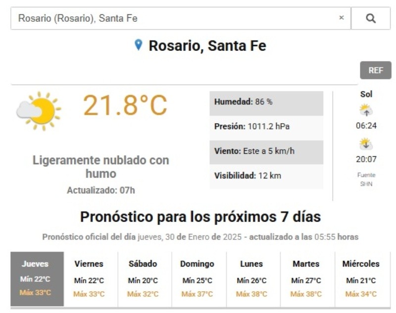 En la previa de una nueva ola de calor que se espera para los próximos días en la región, la ciudad de Rosario amaneció con un clima agradable de 22 grados. Para el resto de la jornada de este jueves, la máxima prevista es de 33 grados.