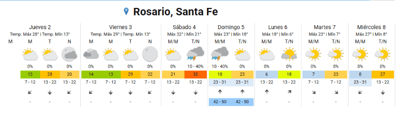 Este jueves Rosario amaneció con una temperatura agradable y con un cielo algo nublado. La mínima durante la mañana era de 12 grados y la humedad se acomodaba en el 88 por ciento.