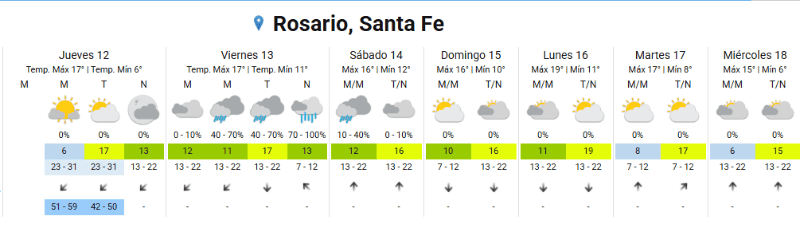 Este jueves Rosario amaneció con un cielo totalmente despejado y una temperatura mínima de 6 grados. Según el Servicio Meteorológico Nacional se espera una jornada agradable y no tan fría donde la temperatura máxima alcanzaría los 17 grados.