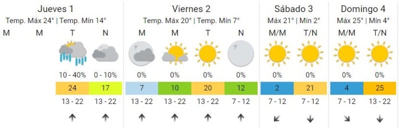 De acuerdo al SMN, podían quedar algunas gotas para la región hasta la noche pero luego, y sobre todo a partir del viernes, el cielo se iría despejando paulatinamente para desembocar en un fin de semana soleado, con mañanas frías (entre 2 y 4 grados) y tardes agradables (21º/25º).