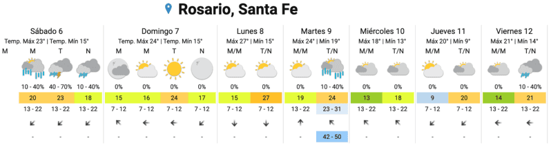 De acuerdo al informe climático, pasado el mediodía podría empezar a entrar en la región un frente de tormentas que traerá lluvias. En el caso de que esto ocurra, el SMN anticipa que sería solo por la tarde del sábado y algún resabio durante la noche.