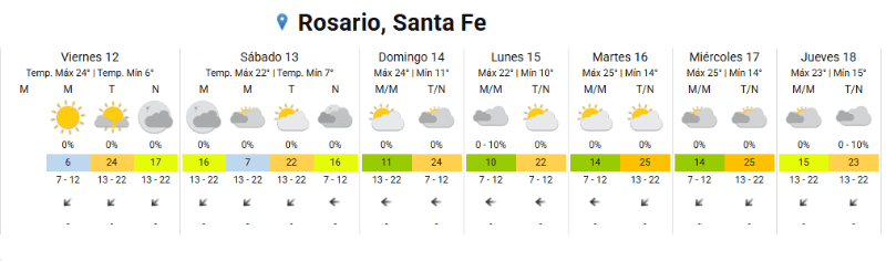 Para la semana próxima el SMN indica un pequeño ascenso de temperatura donde las máximas pueden alcanzar los 25 grados. Hasta el momento no se esperan nuevas lluvias y tormentas.