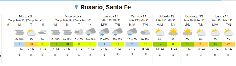 En cuanto a temperatura, la mínima era de 6 grados y la máxima llegaría a los 23, bajo cielo parcialmente nublado y con una húmeda de casi el cien por ciento.