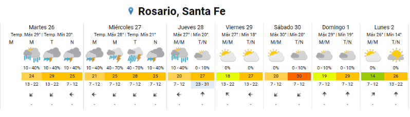 El Servicio Meteorológico Nacional (SMN) anunció hace unos días que la semana iba a estar inestable, húmeda y calurosa. Es así que este martes Rosario amaneció con un alto porcentaje de humedad que casi alcanzaba el cien por ciento y un cielo cubierto de nubes que alertaban a posibles lluvias.