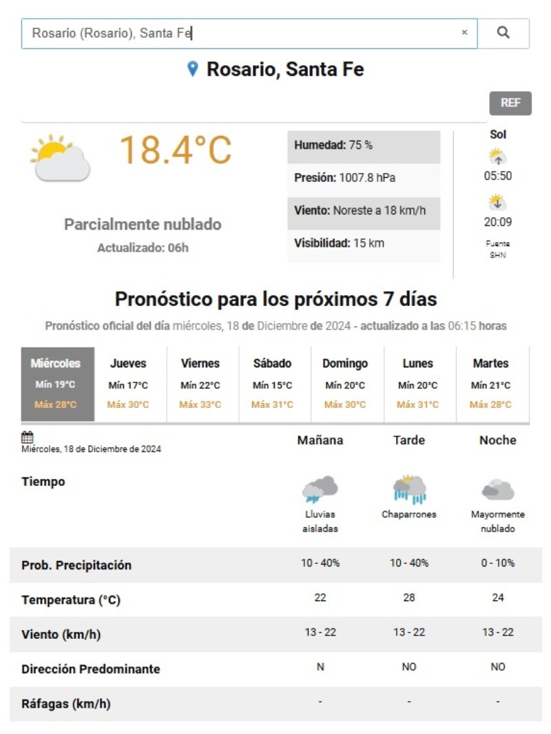 La ciudad de Rosario amaneció una temperatura agradable de 18 grados y con el cielo parcialmente nublado, que se mantendría durante toda la jornada de este miércoles.
