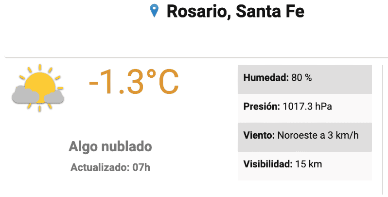 El frente frío que se instaló en Rosario y la región durante la última semana, podría tomarse un descanso en los próximos días. A modo de despedida, este sábado la ciudad amaneció con 1.4 grados bajo cero, viento del noroeste y la humedad rondando el 80 por ciento.