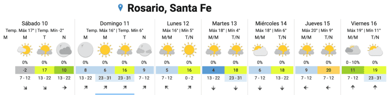 En tanto que, a partir del domingo, las mínimas van a empezar a subir en la región. Desde el Servicio Meteorológico Nacional anticipan un día similar al de este sábado, pero empezando desde los 8 grados a la mañana temprano.