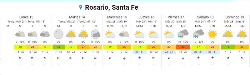Para lo que resta de la semana, entre el martes, miércoles y jueves, las mínimas y máximas serían similares y rondarían entre los 14 y 26 grados.
