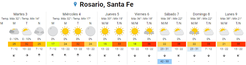 De cara a lo que resta de la semana, el SMN anticipa un miércoles con condiciones similares a las de este martes (mínima de 17 y máxima de 32). En tanto que a partir del jueves empieza un crecimiento sostenido de la temperatura.
