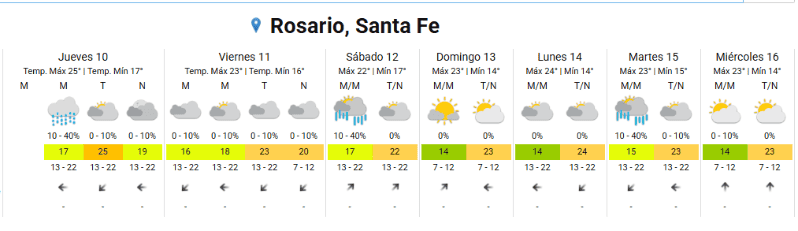 Para este viernes el SMN no registra nuevas precipitaciones, pero sí para el sábado 12 de abril por la mañana. El domingo se irá a votar con buenas condiciones climáticas con una temperatura mínima de 14 y máxima de 23.