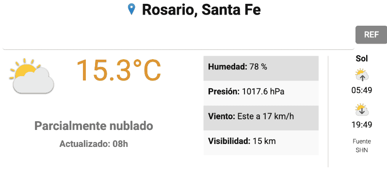 Si bien la ciudad amaneció hoy con 15ºC y cielo parcialmente nublado, las condiciones irán mejorando con el correr de los días. Sin frente de tormenta a la vista, el SMN anticipó una máxima de 23ºC para este sábado con la humedad en el 78% y el viento soplando del este.