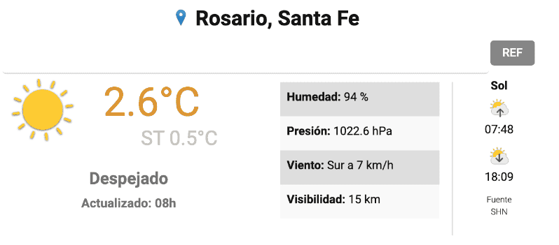 Pese al frío, la buena noticia es que no se esperan tormentas y que el cielo estará principalmente despejado durante toda la jornada. Con esto, se espera que a media mañana el sol logre cierto protagonismo y lleve al menos la temperatura hasta los 14ºC, la máxima prevista para la jornada.