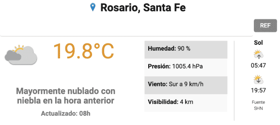 De acuerdo al reporte del Servicio Meteorológico Nacional (SMN), la máxima para la jornada se va a ubicar en los 30 grados y el viento sopla desde el sur a unos 9 km/h.