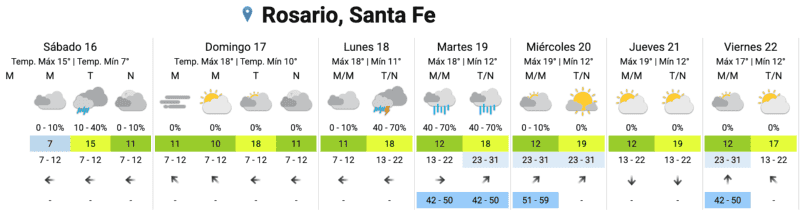 El sábado 16 de agosto amaneció con mucho frío, cielo nublado y la amenaza constante de precipitaciones en Rosario y la región. Temprano por la mañana el termómetro marcaba 6.7ºC, pero la sensación térmica tiraba la temperatura casi dos grados para abajo ubicándose en 4.9ºC.