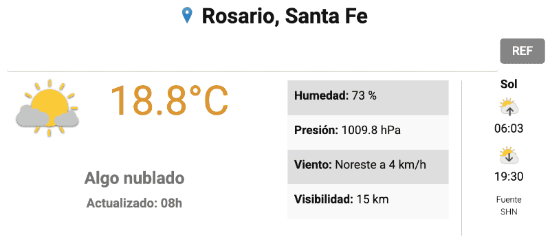 De acuerdo al reporte del Servicio Meteorológico Nacional (SMN), la máxima del día es de 28ºC. Además, se anticipa que la jornada se sostendrá con la humedad cercana al 73 por ciento y el viento pasará del noroeste al suroeste y luego al sudeste.