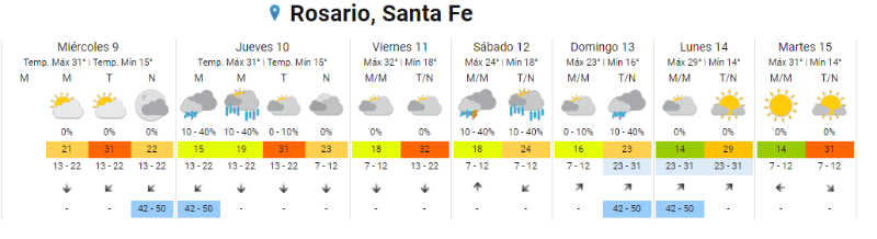 Rosario amaneció este miércoles 9 de noviembre con una leve brisa soplando desde el noreste a 16 kilómetros en la hora que hacía sentir un poco el fresco en la ciudad. Pese a esto la temperatura a las siete de la mañana ya rondaba los 15 grados y se espera que la máxima alcance los 31 a media tarde.