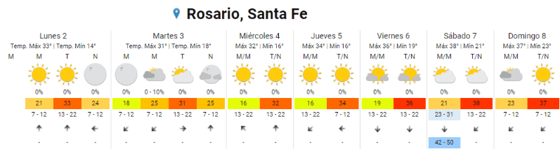 El 2023 empezó con buen clima en Rosario y la región. Tras el calor agobiante del último día del año, las lluvias del domingo bajaron la temperatura y este lunes la ciudad amaneció fresca. Temprano en la mañana el termómetro marcaba 16 grados y se sentía también una brisa soplando desde el suroeste.