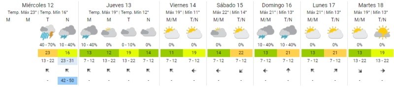 Durante el fin de semana seguirán las temperaturas acordes al otoño y el domingo podrían llegar nuevas lloviznas. La próxima semana seguirán los días frescos con mínimas de 13 grados y máximas en torno a los 20.