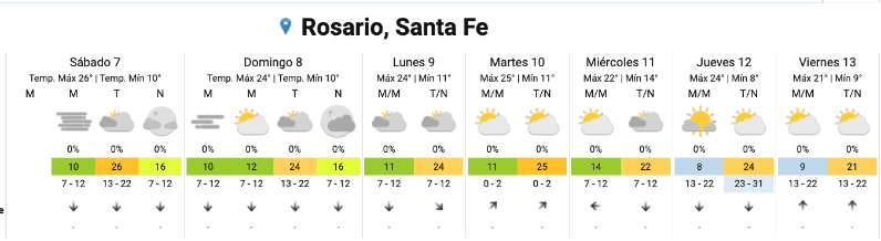 La máxima prevista para la fecha es de 26 grados. De acuerdo a las previsiones del Servicio Meteorológico Nacional (SMN), a esa temperatura se llegará pasado el mediodía cuando además el viento rote y comience a soplar desde el norte.