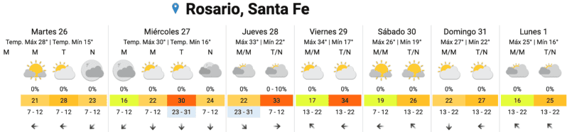 El 2023 se despide con mucho calor para Rosario y la Región. Los últimos días del año parece que serán con máximas cercanas a los 34 grados y la humedad por las nubes. Pese a esto, este martes 26 de diciembre podría decirse que va a ser con temperatura agradable y sol pleno.
