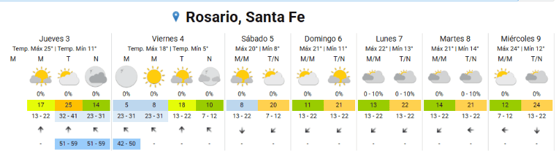 Este jueves Rosario amaneció con un cielo despejado y algunos bancos de neblina producto del alto porcentaje de humedad que alcanzaba el 97 por ciento.