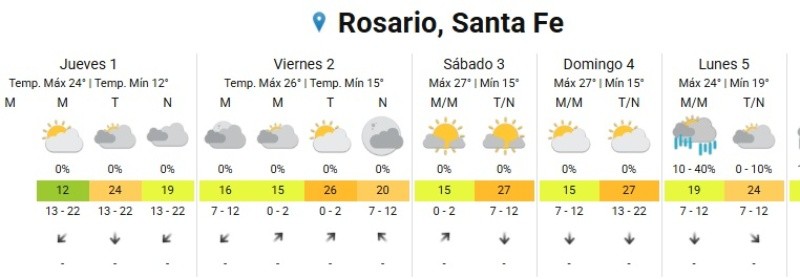 Para el viernes, el SMN pronostica otra jornada con buen tiempo, cielo mayormente nublado, con una leve suba en las marcas térmicas que irán de los 15 a los 26 de grados.