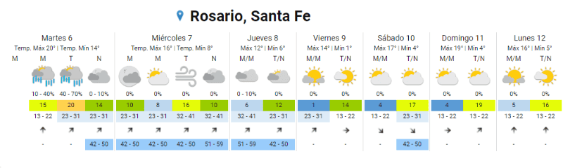 El miércoles cambiaría el viento y llegarían las bajas temperaturas de a poco. La mínima en 8 y la máxima en 16 grados. Luego el jueves y viernes ya el frío se haría sentir aún más, ya que comenzaría el día con 1 grados de mínima.