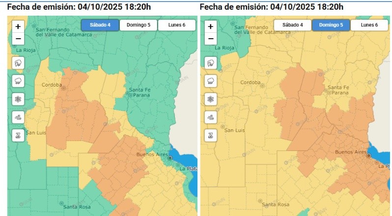 En tanto, para la madrugada del domingo 5 se anticipa alerta naranja por tormentas "con ráfagas que podrían superar los 90 km/h" y "valores de precipitación acumulada de entre 40 y 80 mm, pudiendo ser superados en forma puntual".