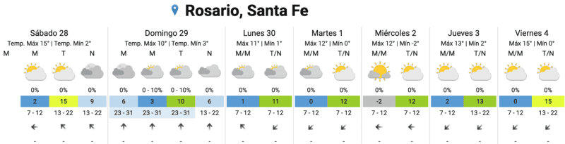 De cara al domingo, día de elecciones, las condiciones no van a ser las mejores. De acuerdo a los datos del Servicio Meteorológico Nacional (SMN), se espera un día gris y con alguna leve probabilidad de lluvia. La máxima dominical será de apenas 10 grados y por la mañana el termómetro rondará los 3ºC.
