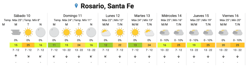 A partir del mediodía la temperatura irá en ascenso y se espera que se ubique en los 25ºC para luego ubicarse en los 16 grados para finalizar la jornada.