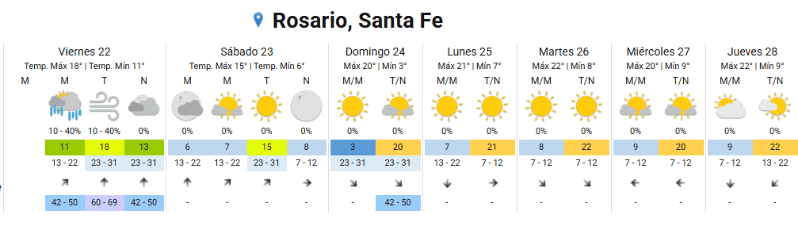 Este viernes Rosario amaneció con un cielo despejado y con una temperatura mínima de 12 grados. La máxima prevista es de 18 grados.
