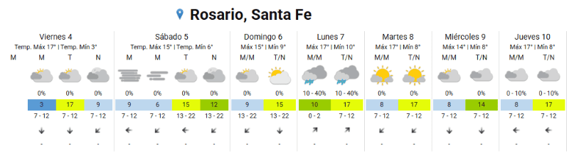 Para el domingo el SMN indica precipitaciones para toda la jornada y las temperaturas máximas serían de 17 grados. Luego, habrá un inicio de semana algo más templado que los últimos días.