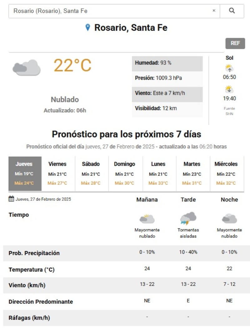 La lluvia se está haciendo esperar. La ciudad de Rosario amaneció con el cielo nublado y una temperatura de 22 grados. Si bien la máxima prevista para la jornada es de 24 grados, estará muy pesado.