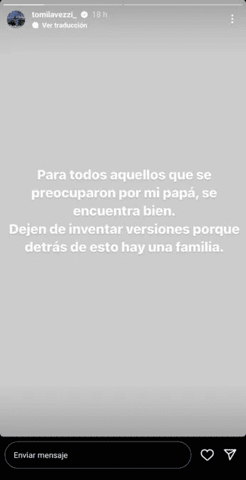 Ante este panorama, el hijo del ex jugador del Napoli, y que actualmente se desempeña en las divisiones inferiores de Unión de Santa Fe, emitió un descargo en su cuenta de Instagram sobre la situación de su padre.