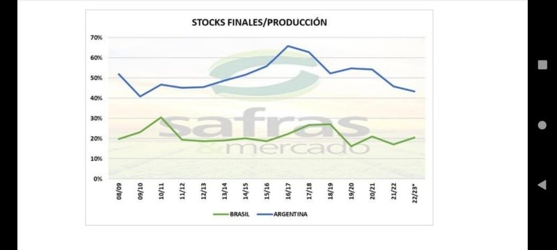MG : No. Para nada. El stock acumulado está entre 3 y 4 millones de toneladas y la cosecha será de 23 millones, cuando una cosecha mala como la del 2021/2022 fue de 43 millones.