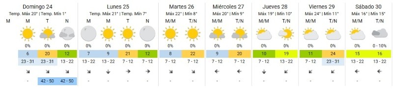 Según el Servicio Meteorológico Nacional (SMN), para lo que resta de la jornada se espera cielo mayormente despejado, viento del noroeste y algunas ráfagas entre la tarde y la noche. La temperatura máxima podría llegar hasta los 20 grados.