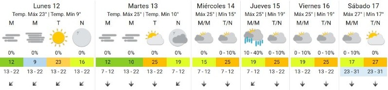 El Servicio Meteorológico Nacional (SMN) anuncia que el lunes comenzará algo fresco, con 12 grados de mínima, baja visibilidad a la mañana y cielo algo nublado por la tarde, con temperatura de hasta 23 grados.