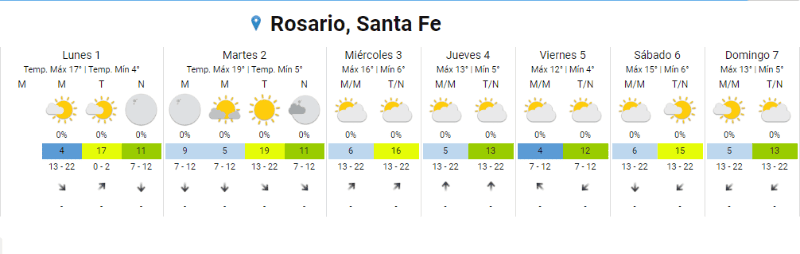 El domingo comenzó frío y se puso agradable, lo mismo ocurriría este lunes 1º de julio. Por la mañana el Servicio Meteorológico Nacional registró una mínima de 4 y se espera que la máxima alcance los 17.