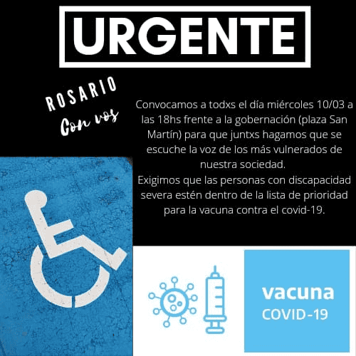 Por último remarcó que el próximo miércoles a las 18 en la plaza San Martín, reclamarán enfrente de la Gobernación para que los chicos con discapacidad severa sean vacunados con urgencia.