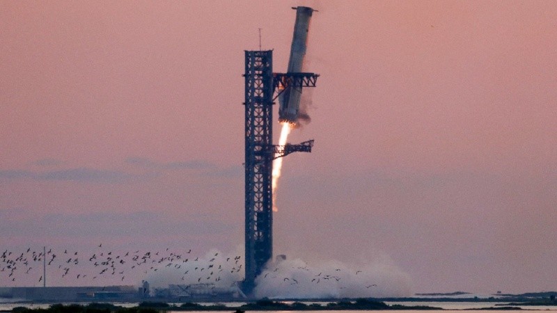 El quinto lanzamiento de la nave Starship marcó un hito en la historia de SpaceX, la compañía aeroespacial del magnate Elon Musk, que ha definido a este vehículo como el "objeto volador más grande y poderoso jamás creado". A las 7:25 de la mañana (hora del este de Estados Unidos) del domingo, una unidad de esta nave acoplada sobre el cohete más potente de la compañía, el Super Heavy, despegó desde la base de Boca Chica en el estado de Texas, en donde casi siete minutos después el propulsor logró aterrizar exitosamente sobre la misma plataforma desde la que inició su vuelo.