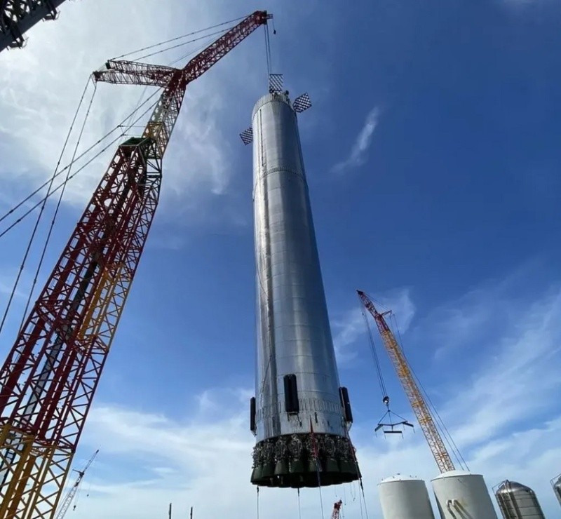 Mientras que la Starship amerizó en el océano Índico poco más de una hora después del lanzamiento, el Super Heavy, un cohete de 70 metros de largo y 250 toneladas de peso, se enganchó sobre los dos brazos mecánicos llamados "Mechazilla", quedando así directamente en posición para despegar nuevamente desde la torre vertical. Esos mismos brazos son los que montan a la nave sobre el propulsor, dos etapas que juntas alcanzan 120 metros de altura.